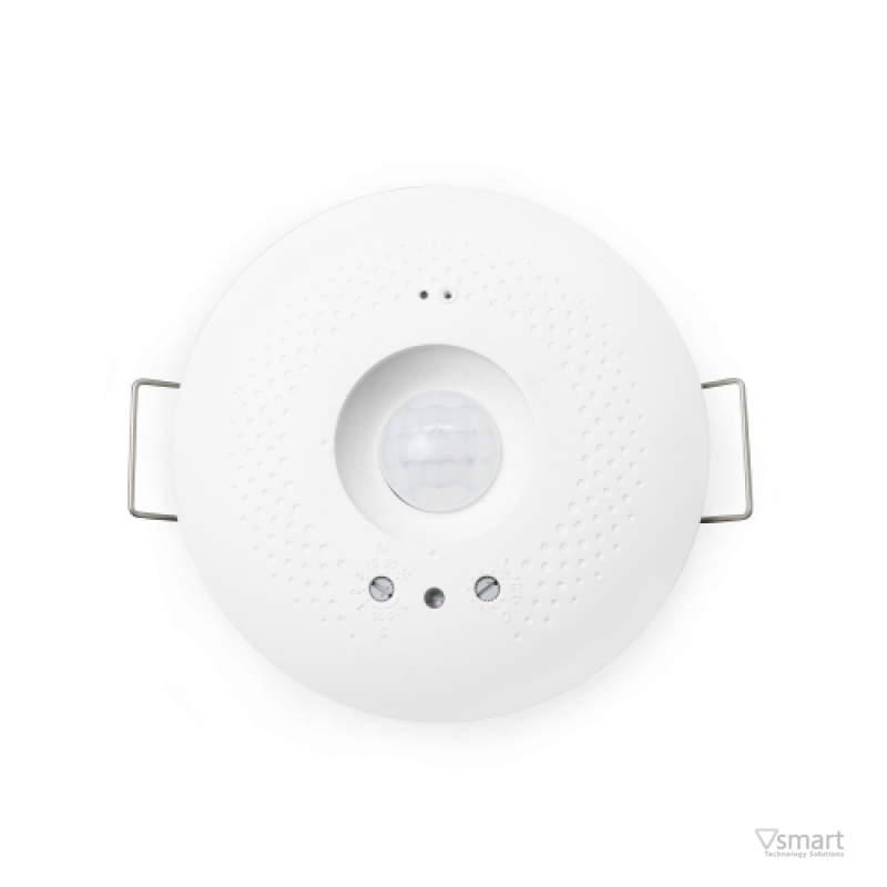 Cảm biến chuyển động chế tạo phù hợp để lắp trần thạch cao và có hỗ trợ lắp trần thường: phát hiện chuyển động khi có người di chuyển trong vùng cảm ứng và bật đèn.